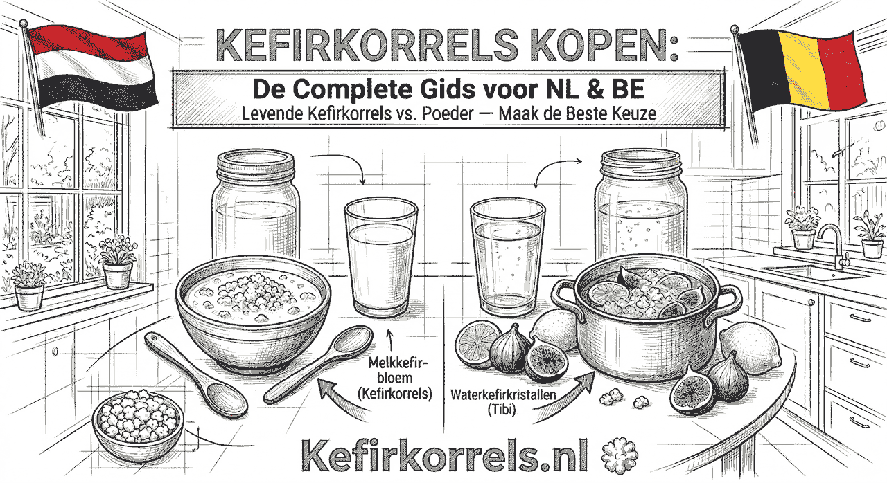 Wilt u starten met het maken van uw eigen probiotische drank en overweegt u kefir te kopen? Dan staat u voor een belangrijke keuze: kiest u voor levende melkkefirkorrels, een poeder-starter uit de fabriek, of haalt u ze bij een particulier? Hier leggen we de cruciale verschillen uit voor de beste start.